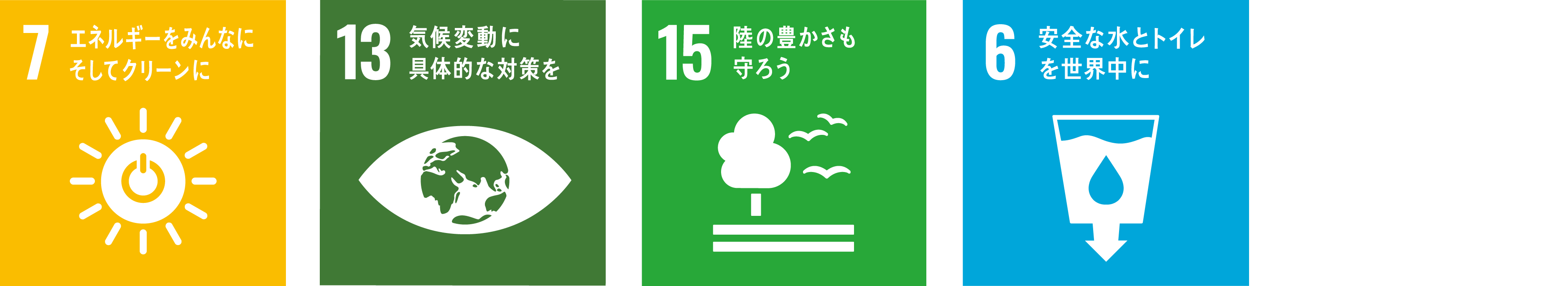 環境負荷の少ない設備提案を実施することにより、気候変動・陸上資源の保全に貢献し、太陽光発電設備を通じて、近代的エネルギーの確保を実現してまいります。